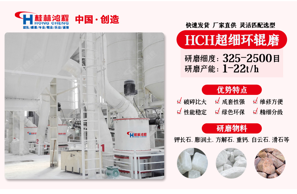 高鈣石磨粉機 桂林鴻程HCH超細環輥磨粉機 高鈣石又叫石灰石主要成分碳酸鈣,石灰和石灰石是大量用于建筑材料、工業的原料。石灰石可以直接加工成...