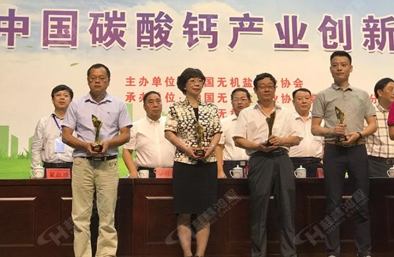 桂林鴻程榮獲2019中國碳酸鈣行業創新獎 桂林鴻程總裁容北國(左一)參加頒獎儀式 2019年9月6日-8日,2019年中國碳酸鈣產業創新大...